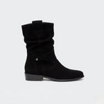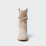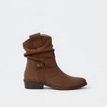 Crafted from soft suede, these casual boots offer a comfortable fit and a modern touch with a decorative strap at the center. The relaxed silhouette adds a boho-inspired charm, while the low heel makes them perfect for everyday wear. A practical side zipper ensures easy on and off.