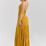 Cut from georgette with a fluid drape, the full-length skirt falls into delicate pleats. A side zip closure adds ease, while the lined finish ensures comfort and elegance.