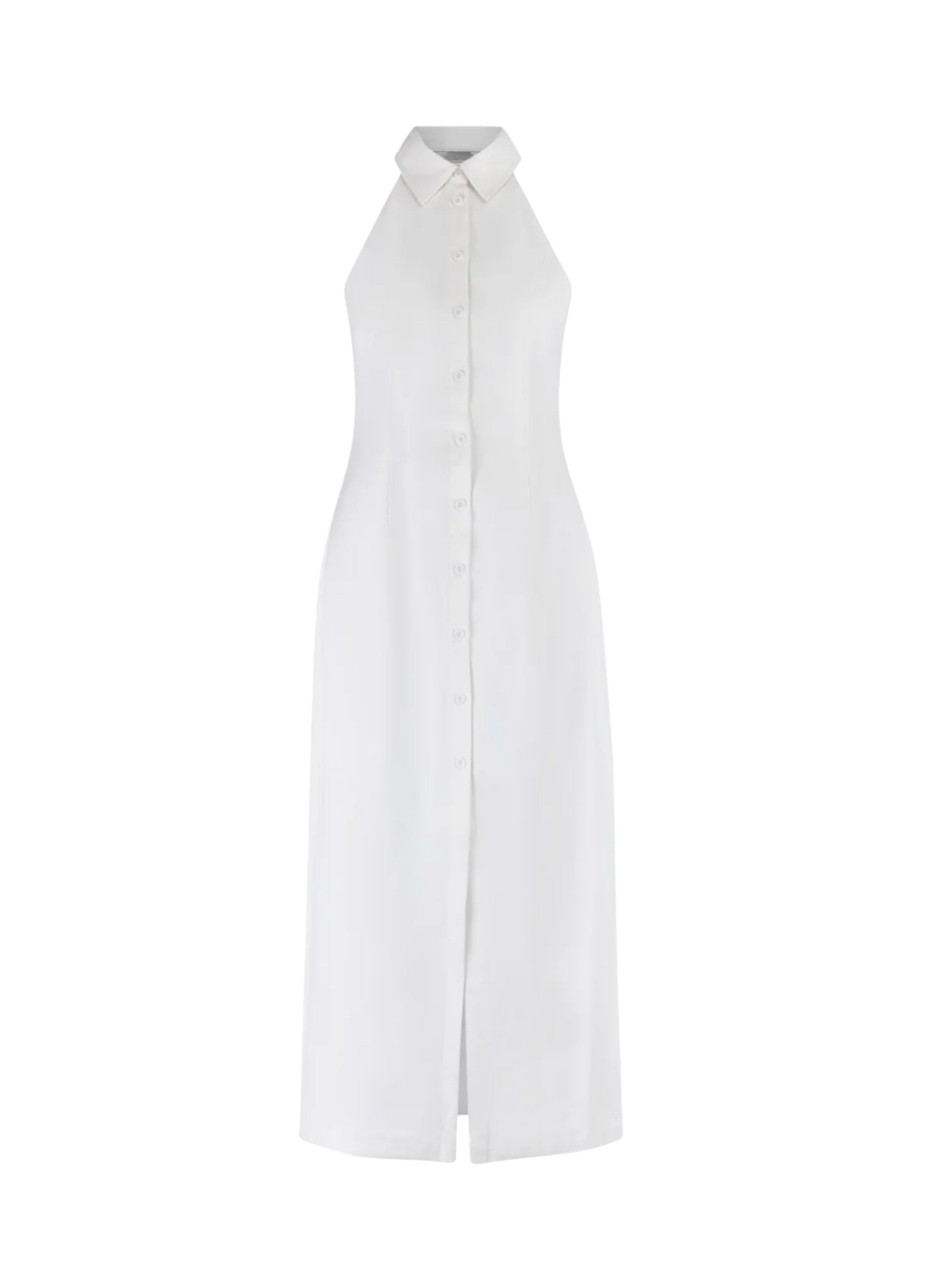 Capri is a modern classic—crafted from lightweight premium fabric that skims the body with ease. The sharp collar and darted bodice create a clean silhouette, finished with front buttons, a back zip, and a subtle front slit for just the right amount of allure.