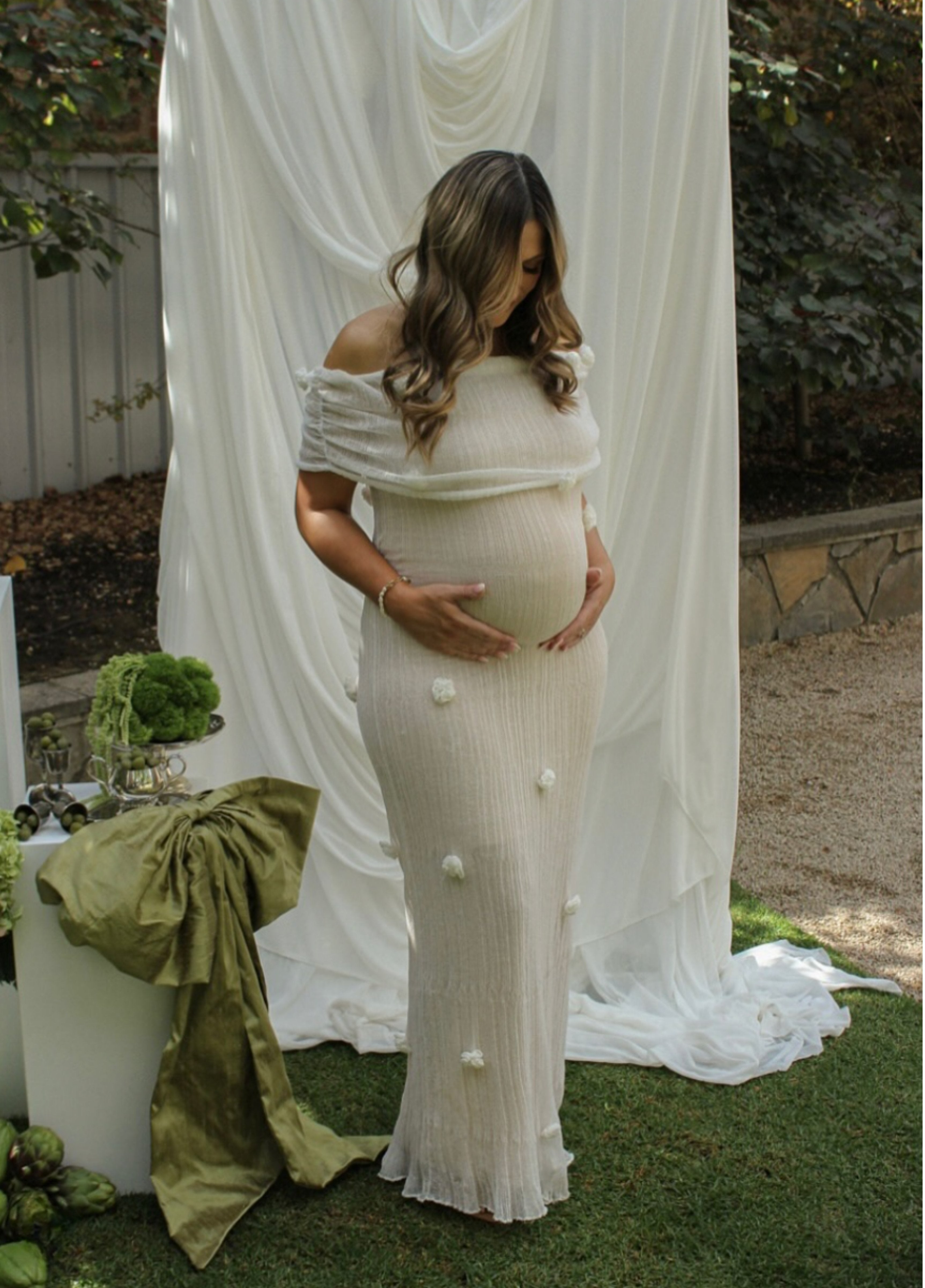 Perfect for maternity celebrations, formal soirées, candlelit dinners, and unforgettable moments. Style with strappy heels and pearl accents for a timeless finish.