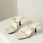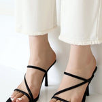 The 'Amanda Strappy Mules' are the ultra-chic cream strappy mules that'll have you feeling like you just stepped off a runway in the most effortless way possible. These stunning slip-on heels feature delicate thin straps that create gorgeous cage-like details across your foot.
