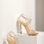 The 'Jennifer Ankle Coil Mid Heels' are the dazzling rhinestone sandals that'll make you feel like you're walking the red carpet every single day. These show-stopping heels feature sparkling crystal straps that wrap elegantly around your legs, paired with a sleek stiletto heel that screams confidence and glamour.