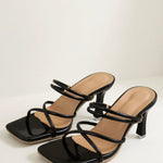 The 'Karen Heeled Sandals' are the statement black strappy sandals that'll have everyone asking "where did you get those?!" These gorgeous heels feature an intricate crisscross strap design that wraps beautifully around your foot with a sleek square toe and high heel for maximum impact.