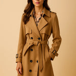 The Bianca Timeless Trench Coat captures timeless sophistication with a modern, feminine twist. Designed with a tailored belt that enhances your silhouette and sleek detailing for a polished finish, this trench offers both warmth and confidence. Perfect for chilly commutes, evening strolls, or adding instant refinement to your everyday look.