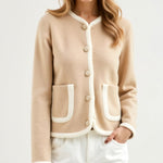 The 'Diana' cardigan is Parisian elegance personified. This refined piece features contrast trim that frames every edge with precision, while tonal buttons add subtle sophistication. The cropped silhouette and patch pockets create that perfect balance of polish and ease.
