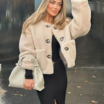 Introducing our Felyn Sheep Jacket, crafted from faux fleece for an effortless blend of style and function. This jacket features an O-neck design, making it perfect for everyday use and special occasions. With an autumn, winter, old money aesthetic, it seamlessly complements your look, whether you're enjoying a casual day out or attending a cozy evening event. Elevate your collection with this essential piece this season.