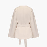 To maintain the integrity and finish of our garments, we recommend gentle hand washing. If machine washing is necessary, please use a delicate or hand-wash cycle to protect the fabric and prevent shrinkage.