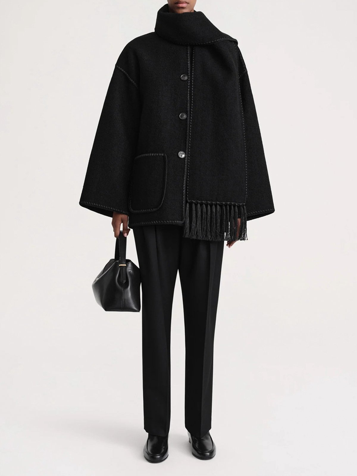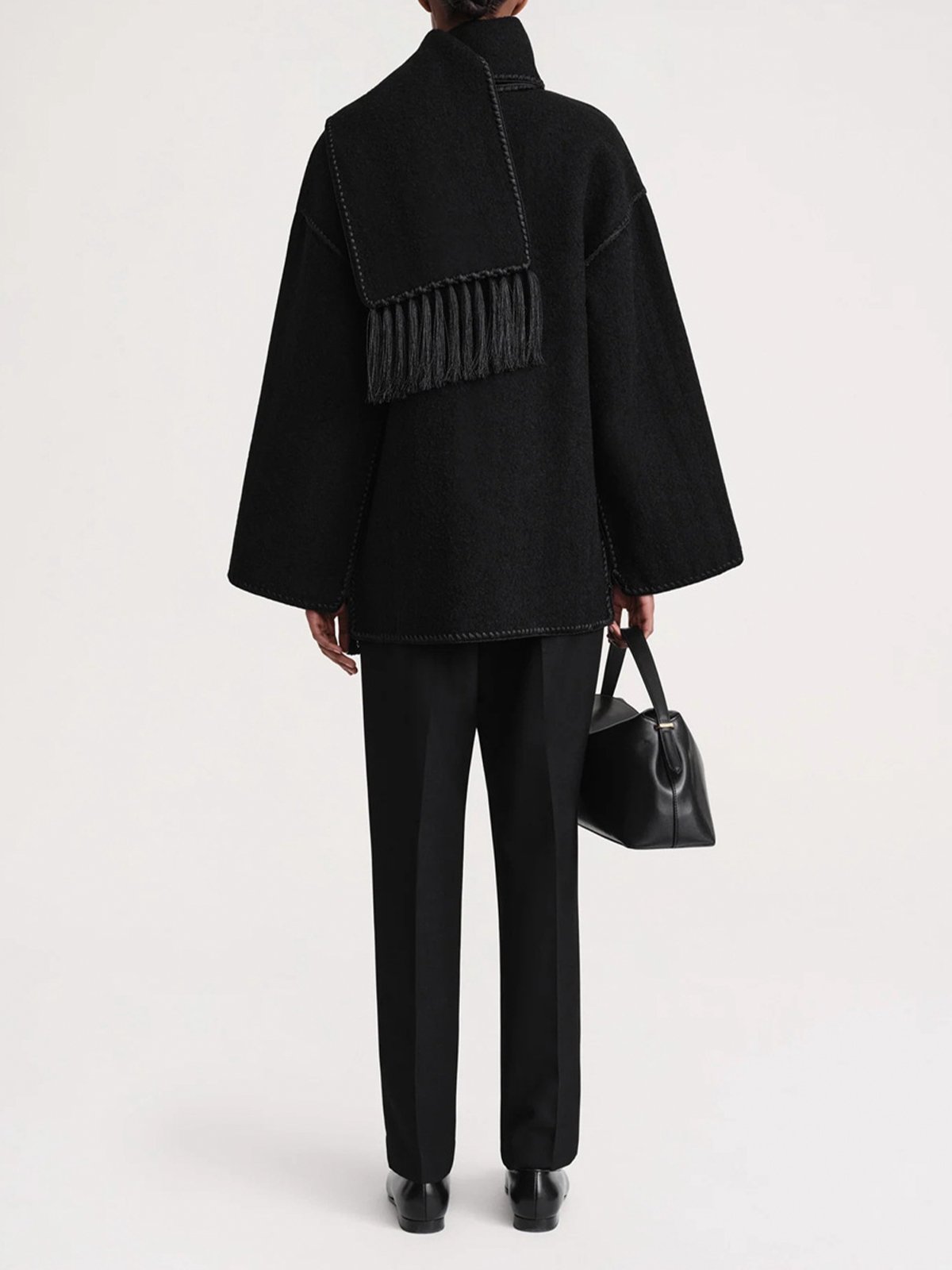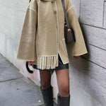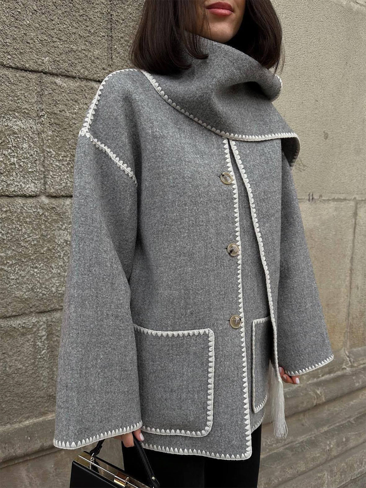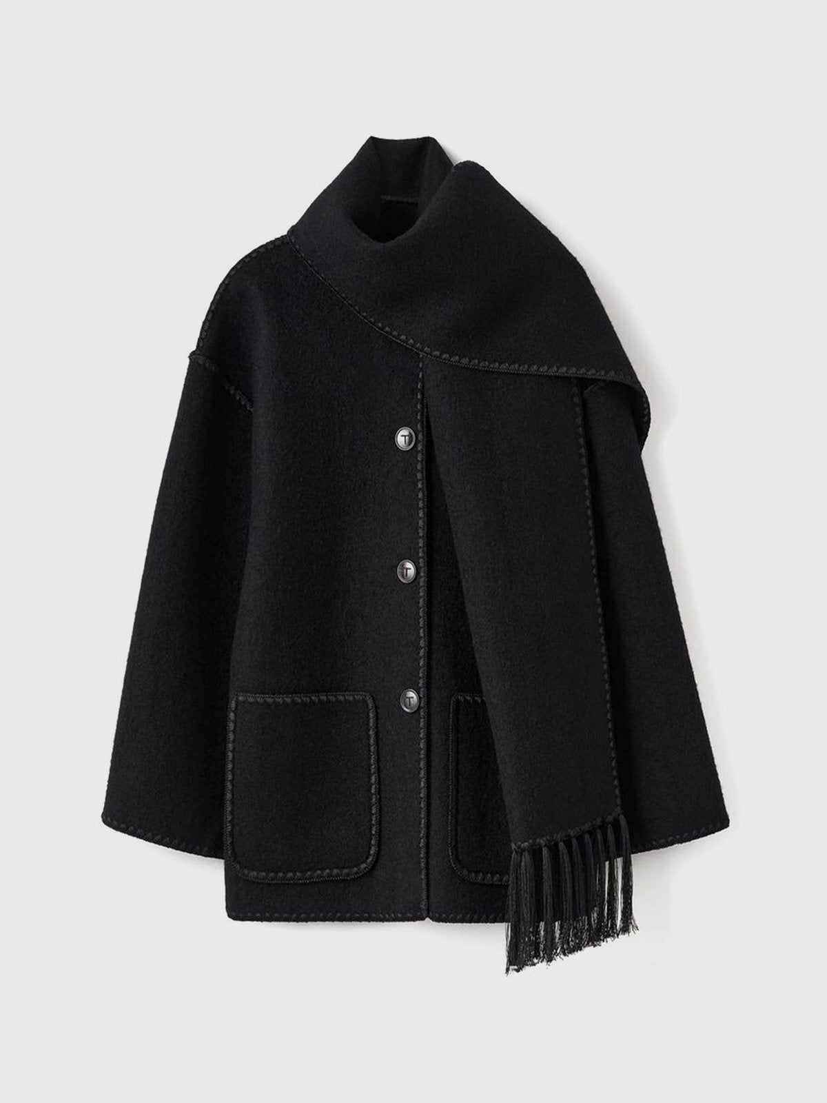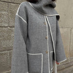 Scarf-Neckline Felt Woolen Coat