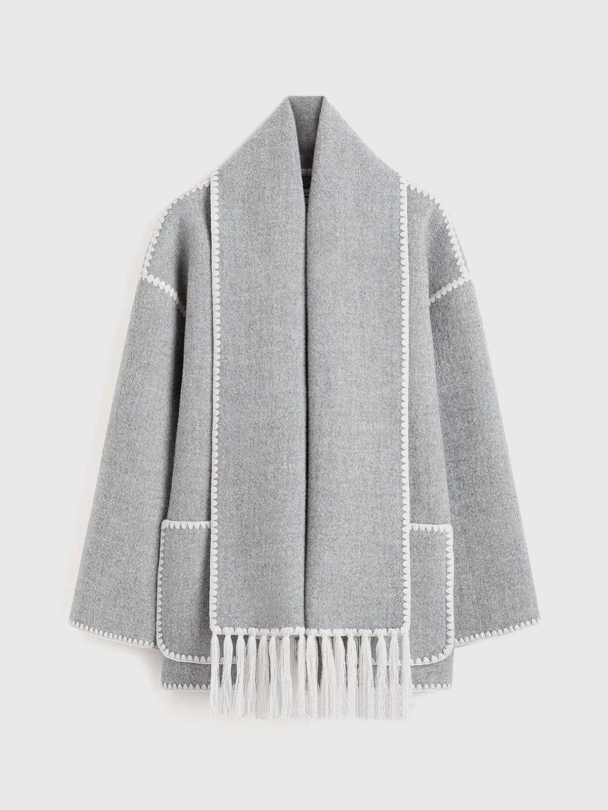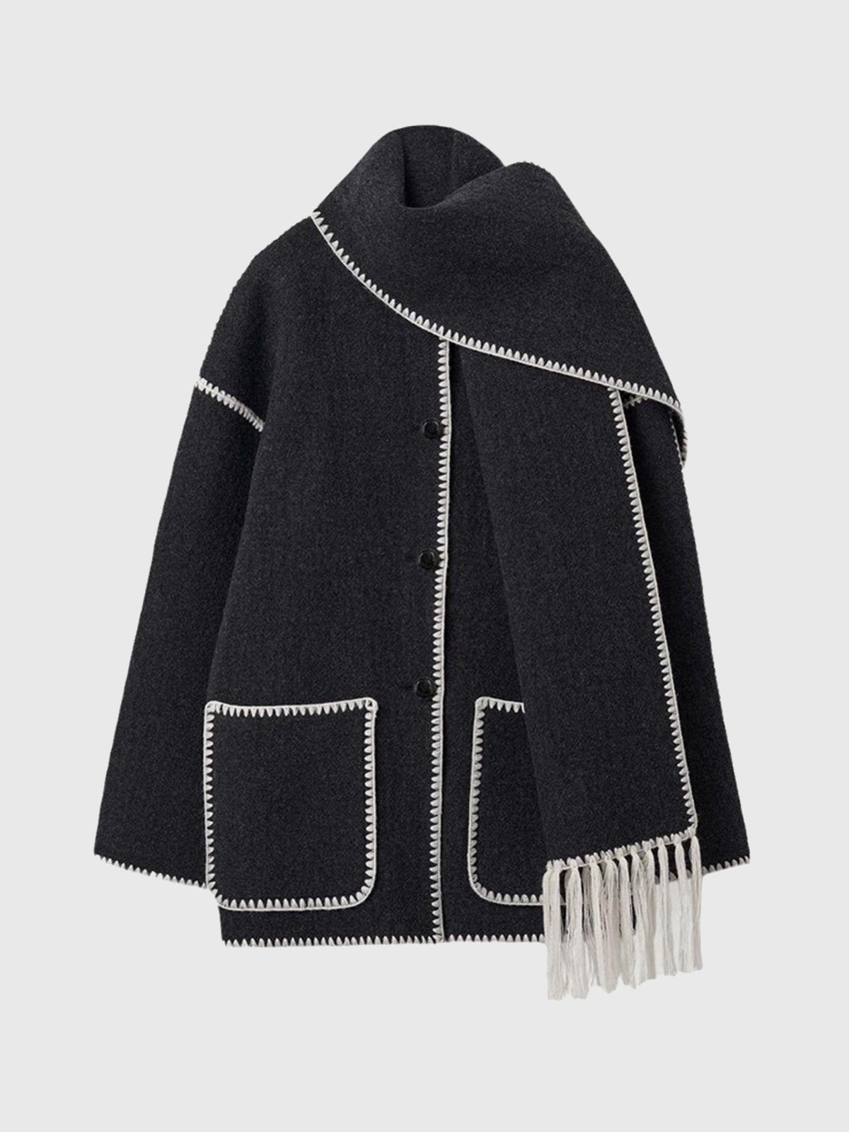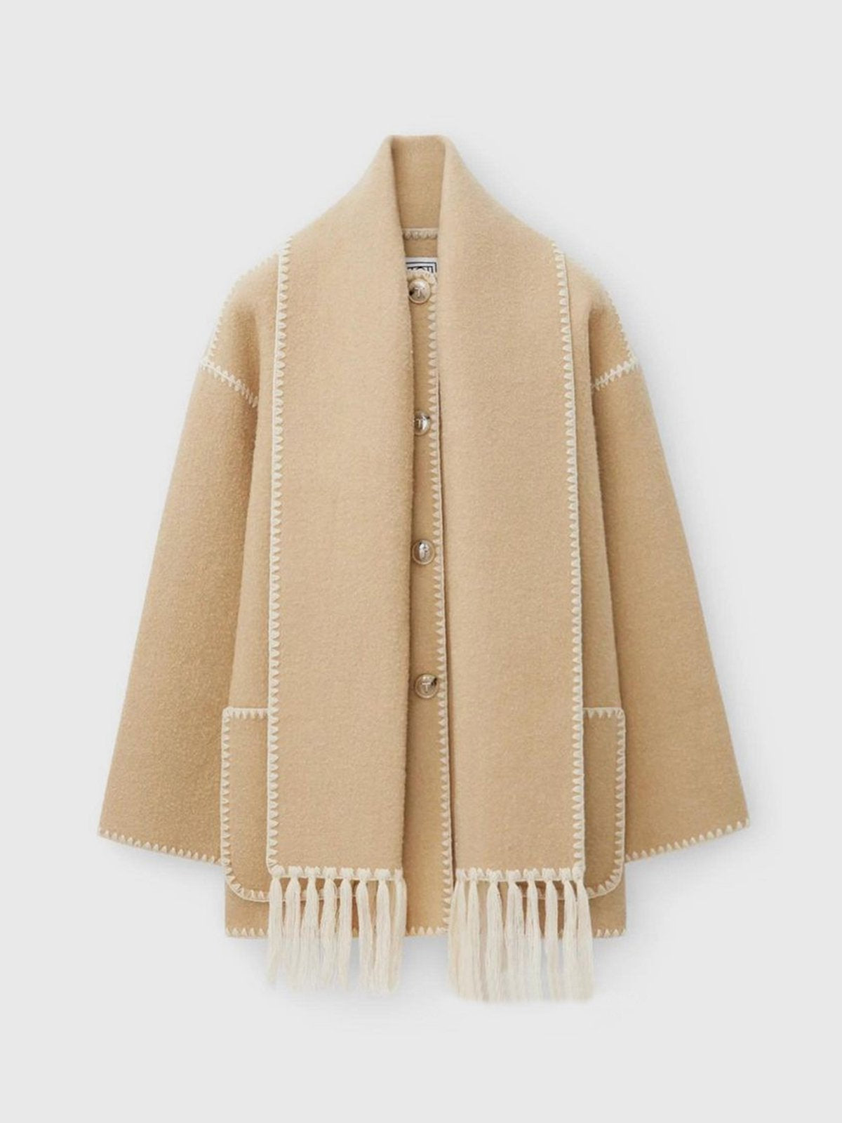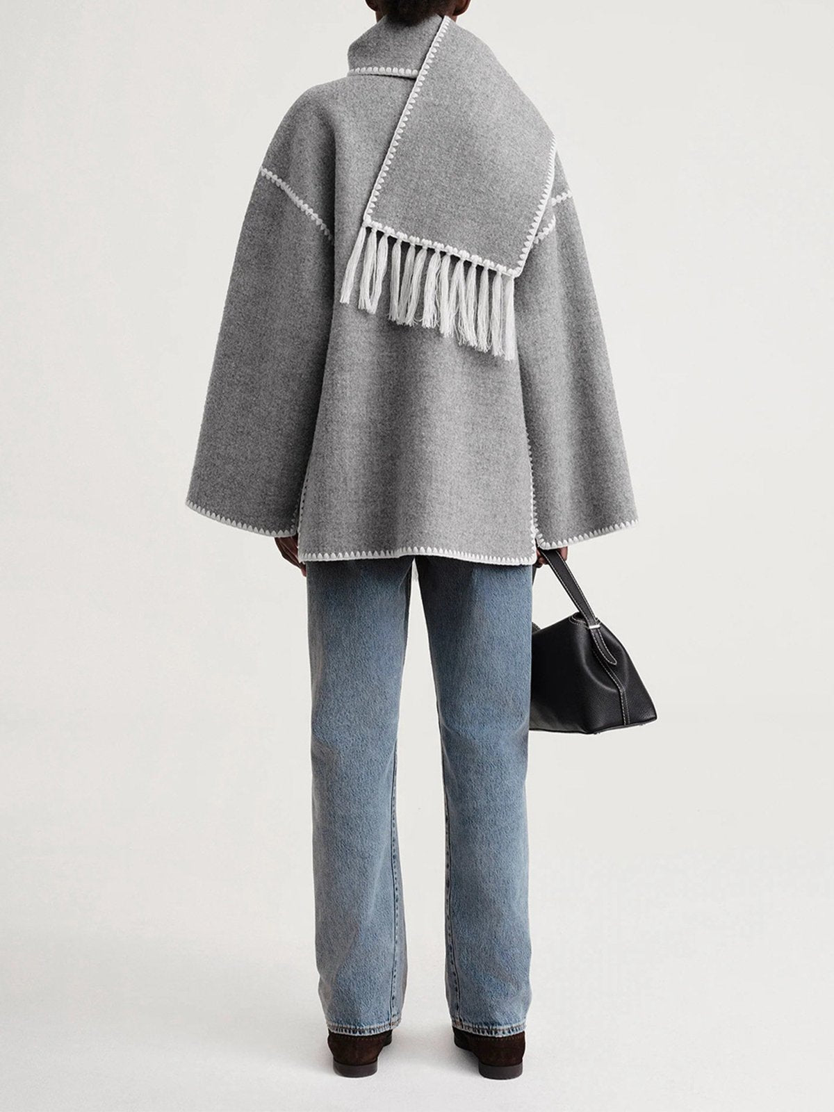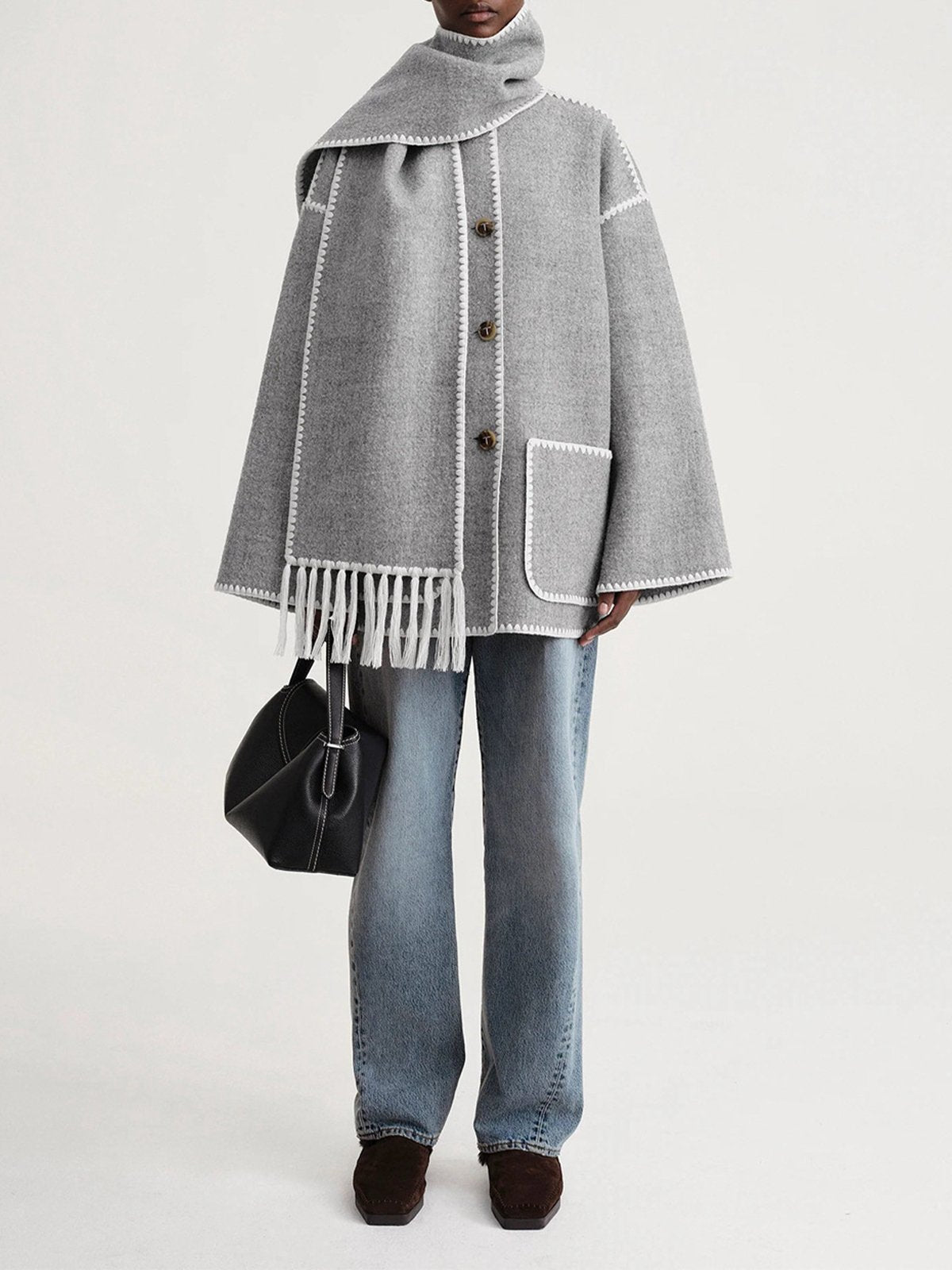 Scarf-Neckline Felt Woolen Coat