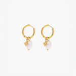 Add a touch of discreet glamour to your style with the PALMÉRA earrings, a perfect blend of classic elegance and playful charm. These huggie earrings, made of delicate freshwater pearls and a refined star pendant, bring a natural sophistication to any of your outfits.
