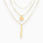 Discover the ZÉNÉVIA necklace, a piece of jewelry that embodies timeless beauty and sophistication. Made from high-quality stainless steel and plated with 18K gold, this necklace exudes luxury and elegance. Its layered design adds depth to your outfits, creating a modern and refined look – perfect for any occasion.