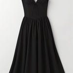 - Fitted-style bodice that creates a sleek and polished silhouette