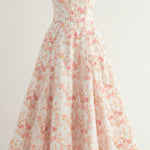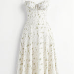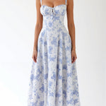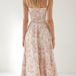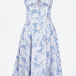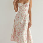The 'Josie Midi Sundress' is cottage core romance brought to life - that dreamy piece that makes you look like effortless elegance whether you're at a garden wedding or enjoying a sophisticated brunch with friends. This enchanting stunner features a sweetheart neckline with delicate lace-up detail and wide supportive straps, flowing into a beautifully flared A-line midi skirt in a soft vintage floral print.