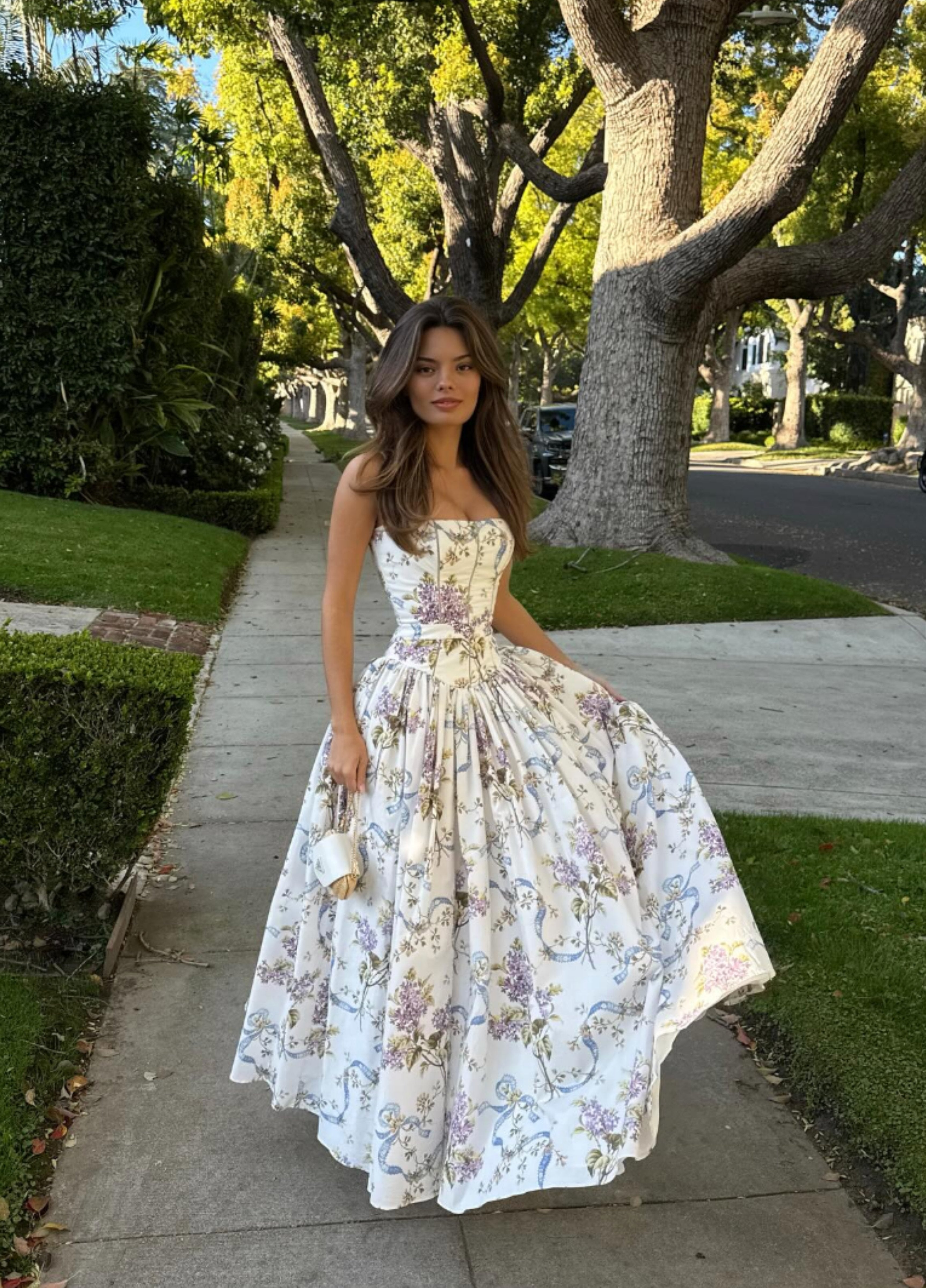 Perfect for countryside escapes, luncheons, and romantic strolls. Style with raffia heels and a ribbon in your hair.