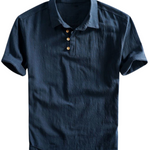 - Classic Polo Design – Timeless collar and button placket with a linen twist.
