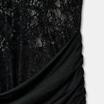 Liora pairs delicate lace with a fluid black drape — a statement of quiet confidence and timeless femininity.