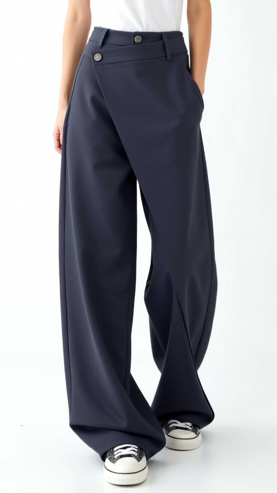 The 'Jean' Trousers are architectural elegance in motion with innovative asymmetrical overlay creating dramatic movement in premium weight fabric with perfect drape.
