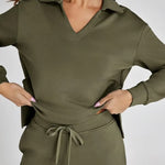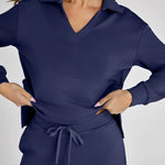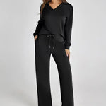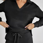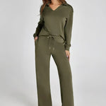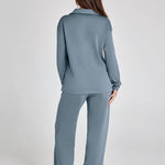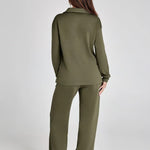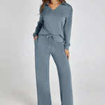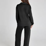 - Figure-Flattering Design: The high-waisted pants and flowing top provide a streamlined silhouette.