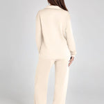 This set combines comfort and style in a design that beautifully flatters your figure. The oversized top and high-waisted pants create a streamlined silhouette and offer endless styling possibilities. The lightweight fabric makes it the perfect outfit for a beautiful spring or summer day.