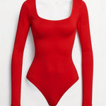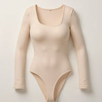 The 'Long Sleeve Thong Bodysuit' is versatile elegance redefined. This wardrobe essential features our ultra-soft stretch fabric that hugs your curves with lightweight support, while the square neckline and long sleeves create a perfect balance of coverage and allure. The thong design ensures a seamless look under any bottoms.