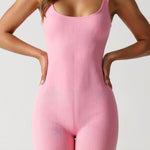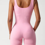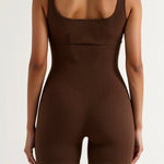 The 'Ribbed Square Neck Briefs Jumpsuit' is minimalist chic personified. This versatile one-piece features premium ribbed fabric that contours your silhouette with light compression, while the square neckline and mid-thigh length create a streamlined sporty aesthetic. The seamless construction ensures all-day comfort and effortless style.