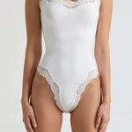 - Delicate lace detail at neckline and leg openings