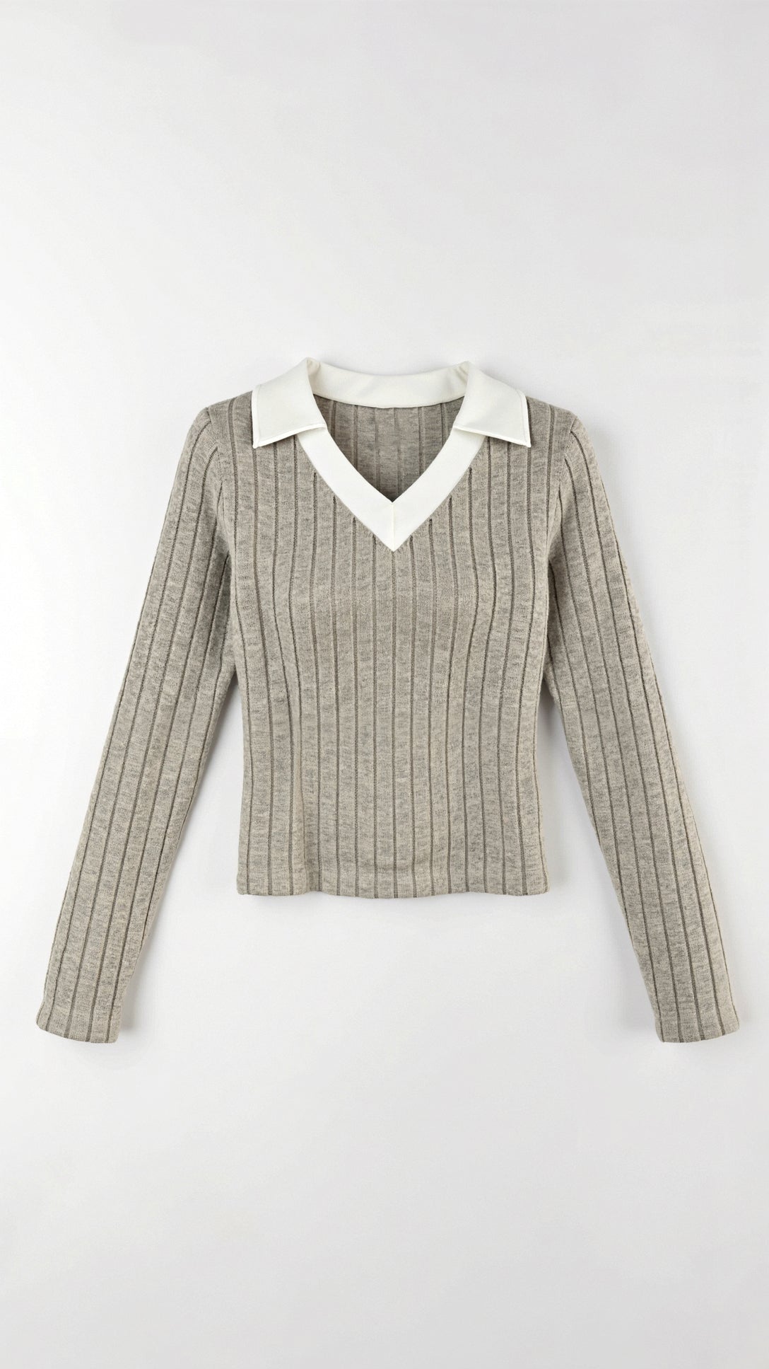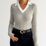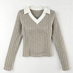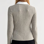 The 'Althea' collared knit top is understated luxury personified. Crafted from premium ribbed material with meticulous attention to detail, this figure-framing silhouette creates a polished profile you can count on. The contrast white collar and deep v-neck add a preppy sophistication that elevates this piece far beyond a basic knit.