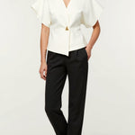 - Premium structured fabric with dramatic shoulder detailing