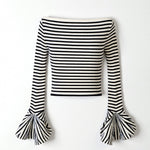 Meet the 'Anna Striped Ruffle Sleeve Top' — your new go-to for that chic, laid-back vibe! Featuring a flattering off-shoulder neckline, soft ribbed texture, and flared sleeves, this striped beauty pairs perfectly with jeans, skirts, or shorts. It’s effortlessly trendy, super comfy, and gives that “Parisian café on a Sunday” kind of charm.