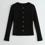 Slip into cozy-chic vibes with this soft, stretchy 'Betty Button-Up Knit Top' that keeps you warm while looking totally put-together. The cute gold buttons and flattering fit make it your new go-to for work days, date nights, and chill hangs with the girls.