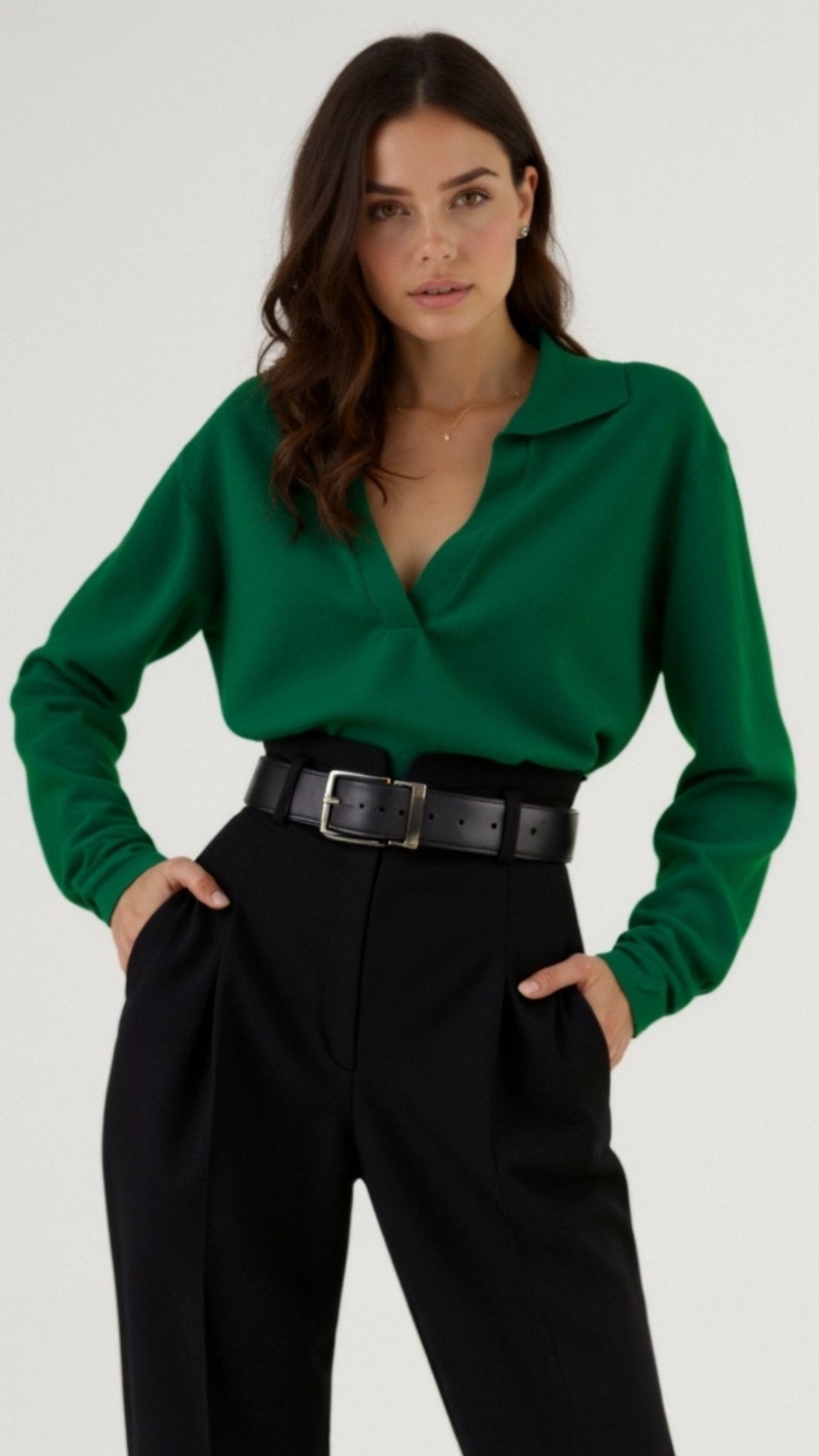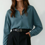 This trendy 'Margaret Casual V-Neck Polo Sweater' brings a fresh, modern vibe to any outfit with its cool V-neck cut and comfy feel, perfect for everyday adventures or chic nights out. It’s soft, stylish, and easy to mix and match—fashion made simple and fun for everyone!