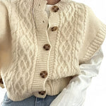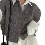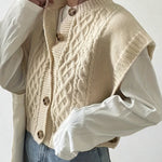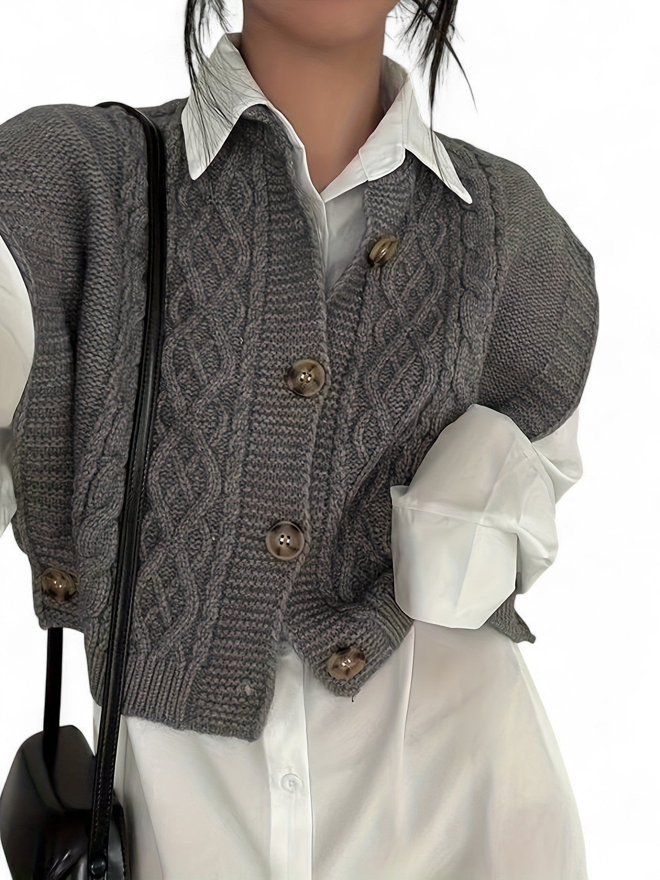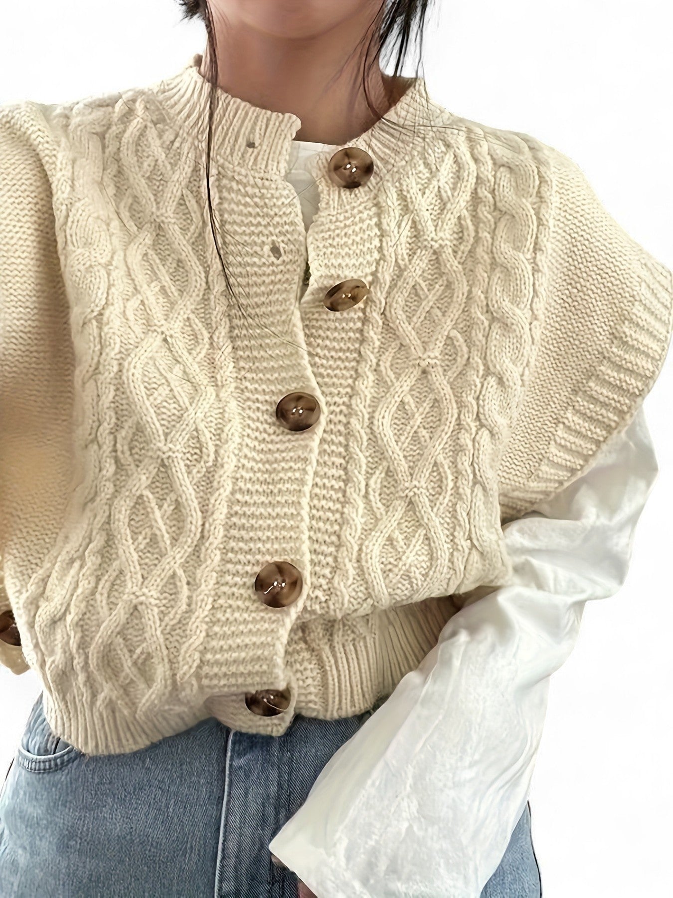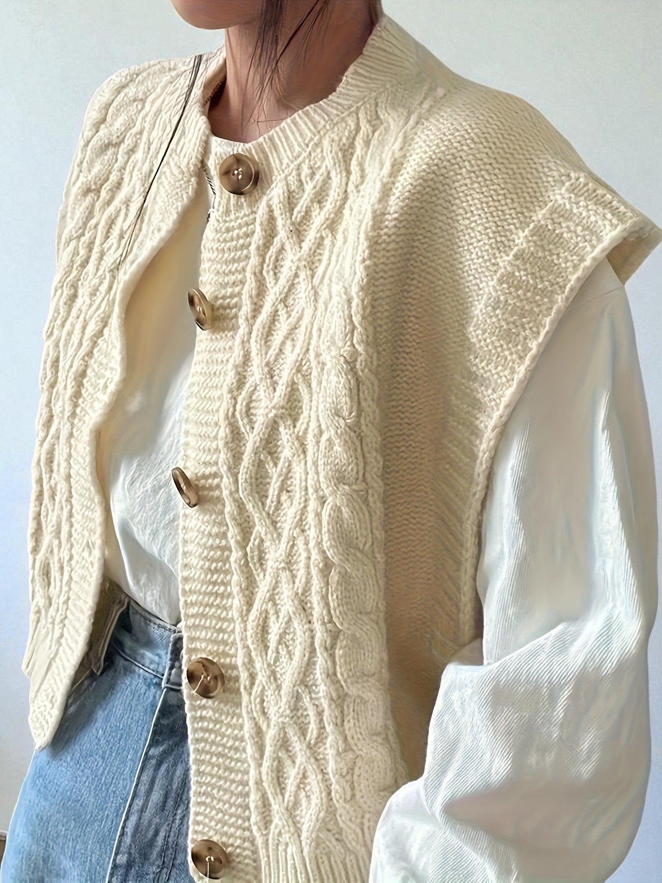 - Design: Textured twist-knit with a stylish button-front closure and classic crew neckline