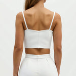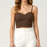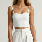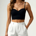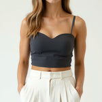 The 'Guinevere' top is pure elegance in crop form. This structured piece features a sweetheart neckline that knows how to frame your best angles, while the fitted silhouette hits just right at the waist. The clean lines and supportive straps prove that sometimes less really is more.