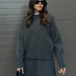 The Laura Knit Set blends comfort and sophistication in the most natural way. Crafted from a luxuriously soft knit, it feels warm yet breathable — perfect for those days when you want to look elegant without trying too hard. The relaxed top and gently shaped skirt create a flattering silhouette that moves beautifully with you, making it a timeless choice for women who value ease, warmth, and style.