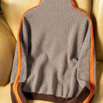 The high neckline provides extra warmth, while the contrasting stripes add a touch of modern charm and effortless elegance.