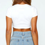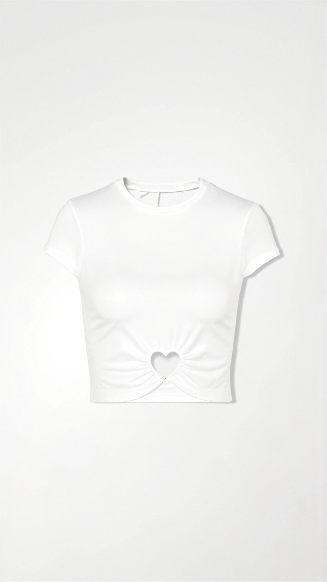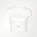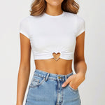 The 'Luna' crop top is flirty charm personified. This sweet yet sassy piece features a heart-shaped hardware detail that gathers the fabric just so, while the fitted silhouette and cap sleeves create that perfect retro-inspired line. The buttery soft jersey proves basics don't have to be basic.