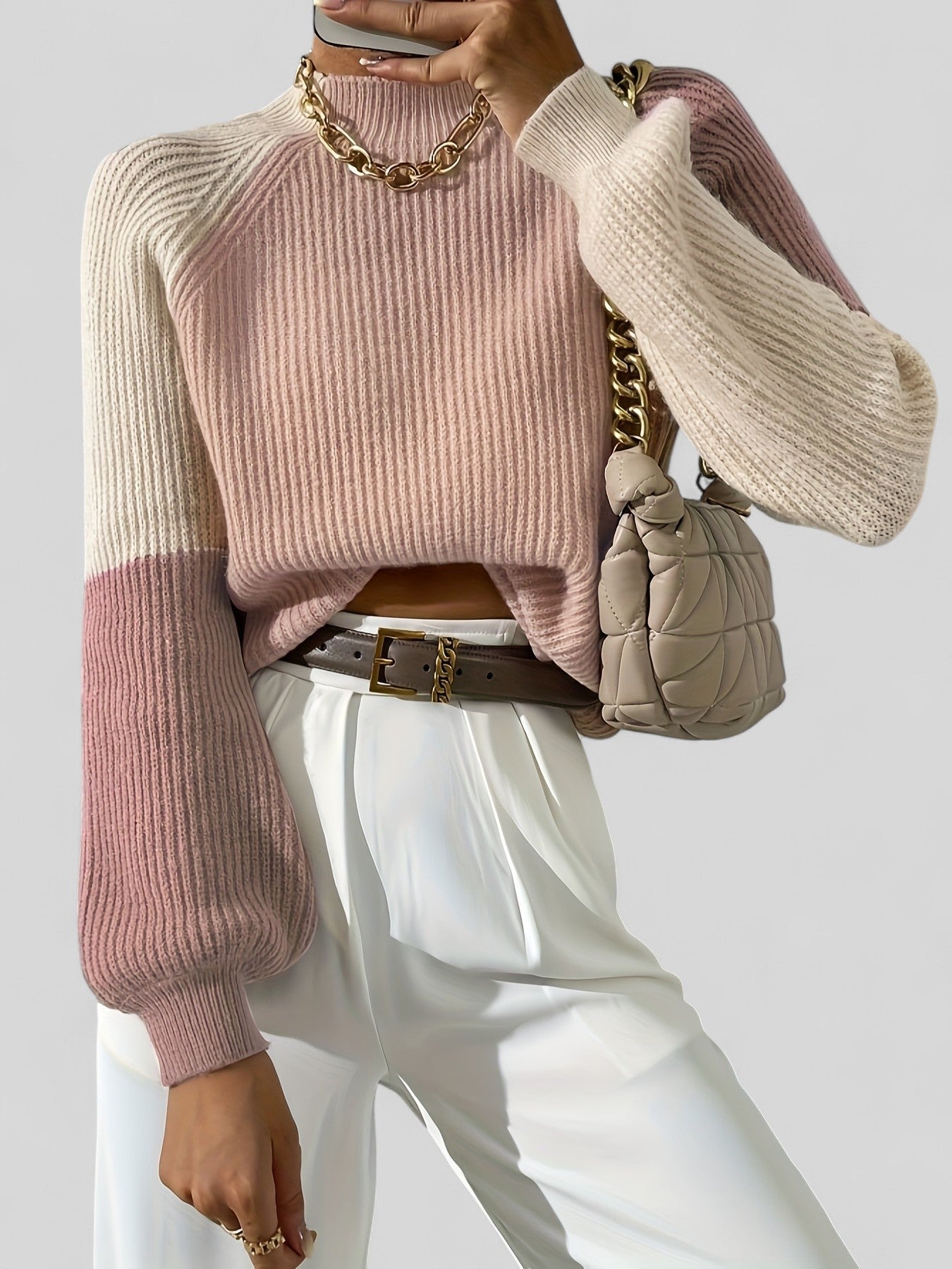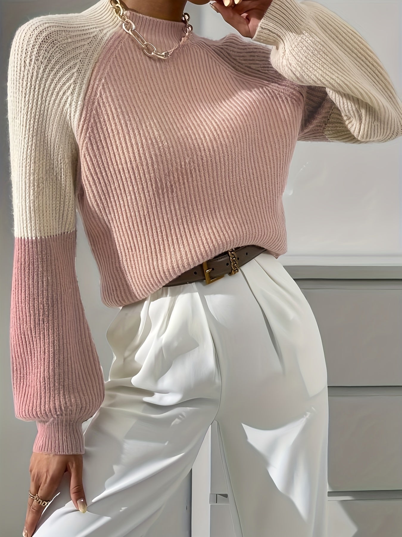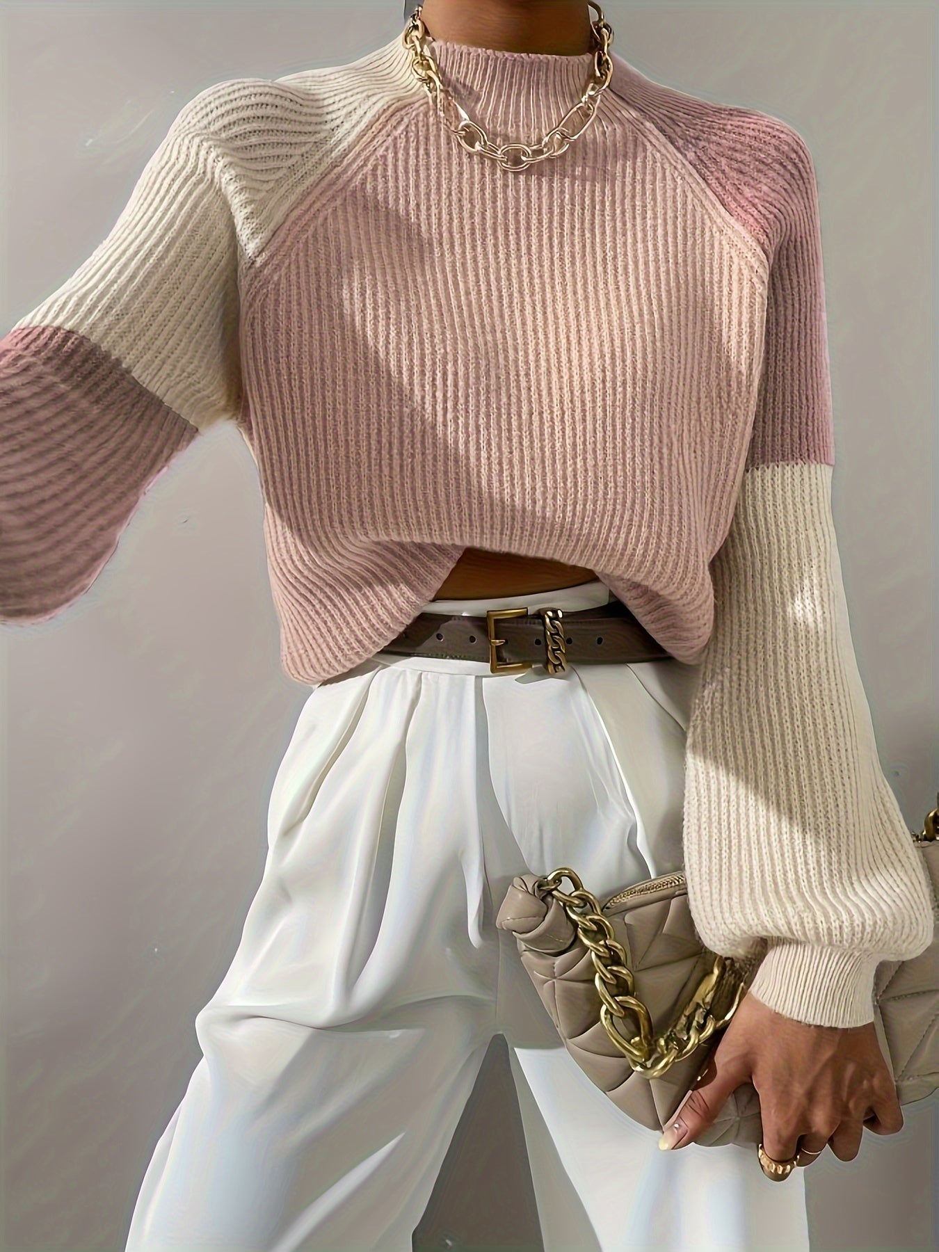 Paris Color Block Mock Neck Sweater