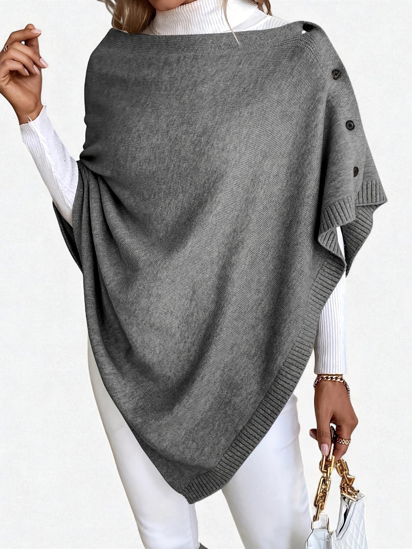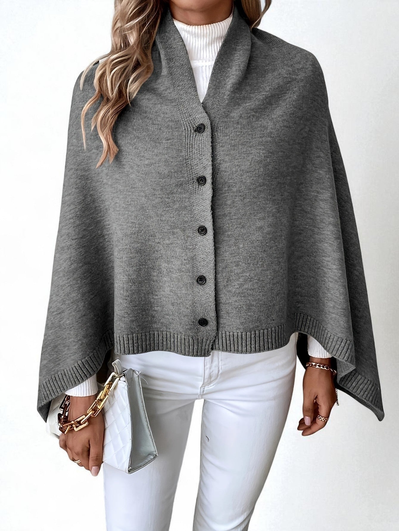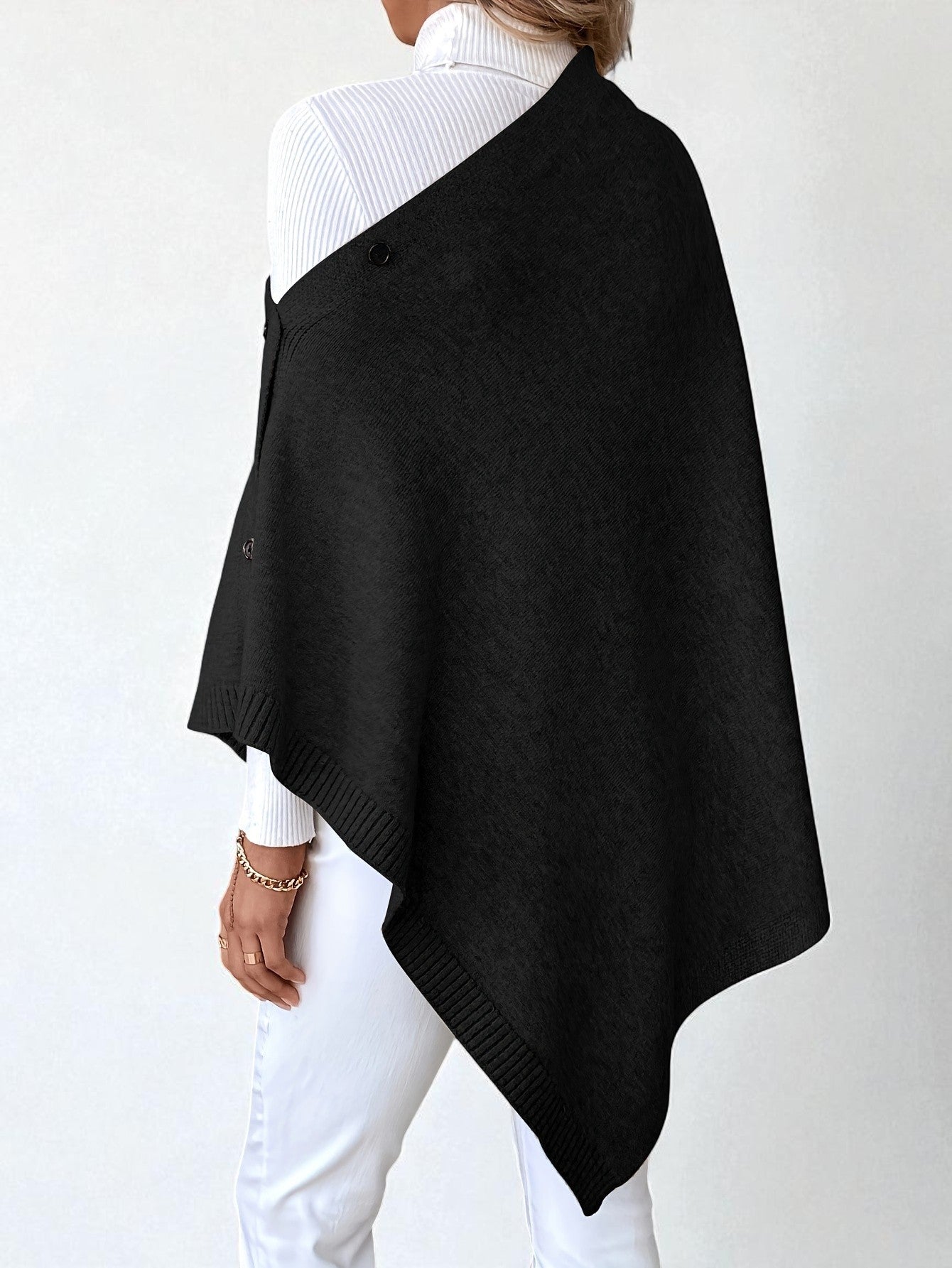 - Effortless layering piece – transforms into a shawl, cape, or poncho with simple button adjustments.
