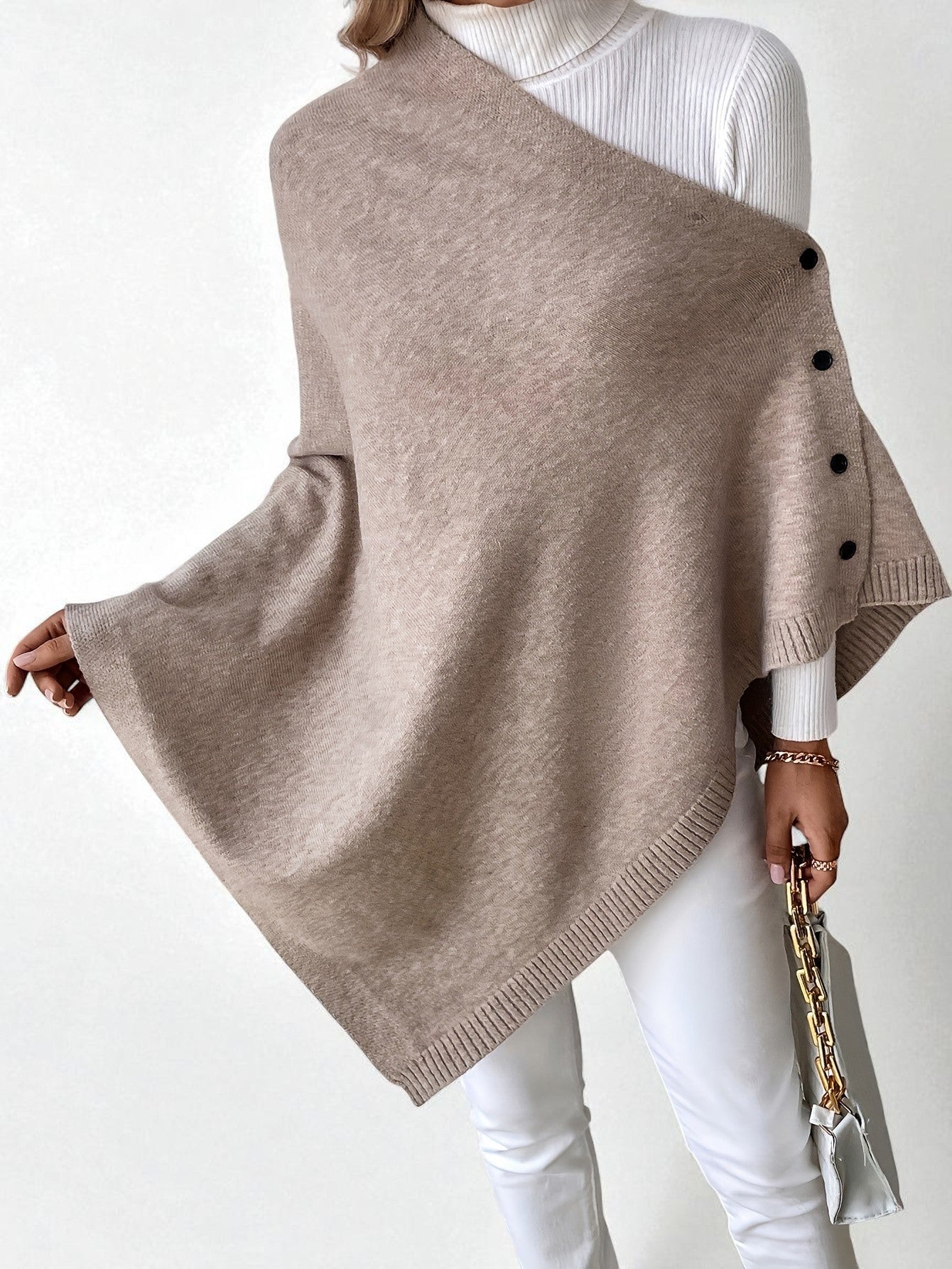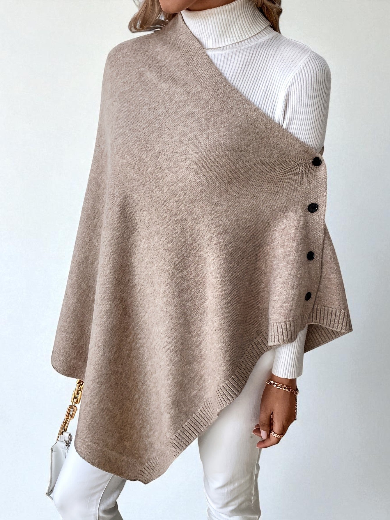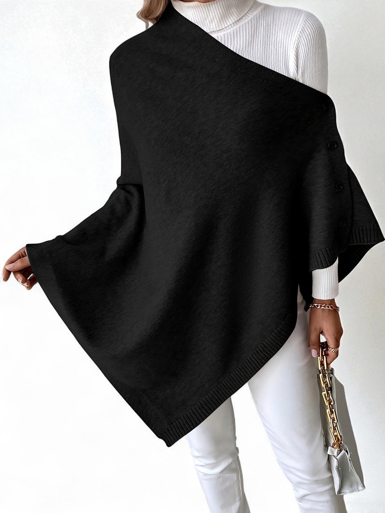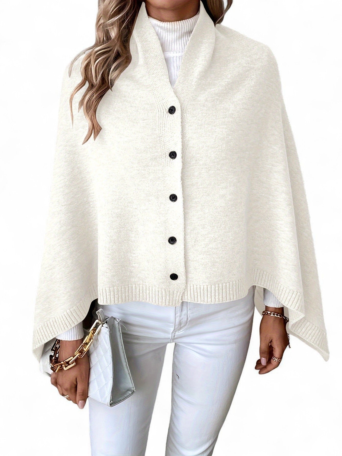 - Effortless layering piece – transforms into a shawl, cape, or poncho with simple button adjustments.