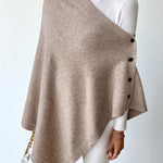 Elevate your wardrobe with this multi-function solid-color shawl/accessory, crafted for both elegance and versatility. Featuring a buttoned design and flowing knit, it transitions effortlessly from seasons and styles.