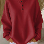 This soft waffle knit top gives you exactly that. The fabric feels light and cozy against the skin, while the relaxed shape flatters without clinging. It’s easy to wear, simple to style, and perfect for those quiet mornings or relaxed days out. With its subtle texture and thoughtful button detail, it’s the kind of piece that makes feeling good look effortless.